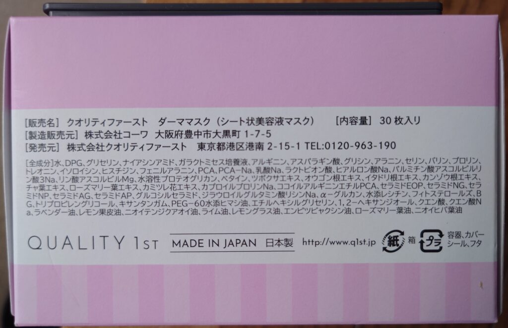 【全成分】水、DPG(溶剤/保湿/防腐補助/減粘/賦香)、グリセリン(保湿/溶剤/保水)、ナイアシンアミド4%(コラーゲン生成促進/肌バリア機能修復/細胞賦活/色素沈着抑制)、ガラクトミセス培養液(抗炎症/メラニン生成抑制/色素沈着抑制/皮脂分泌調整)、アルギニン(ターンオーバー促進/血行促進/細胞賦活/pH調整/乳化助成)、アスパラギン酸(ターンオーバー促進/細胞賦活)、グリシン(抗炎症/コラーゲン生成促進/肌バリア機能修復)、アラニン(コラーゲン生成促進/ラミニン5生成促進)、セリン(ターンオーバー促進/肌バリア機能修復)、バリン(コラーゲン生成促進/ターンオーバー促進)、プロリン(コラーゲン生成促進/細胞賦活)、トレオニン(コラーゲン生成促進/細胞賦活)、イソロイシン(抗炎症/コラーゲン生成促進/ターンオーバー促進)、ヒスチジン(抗炎症/UV刺激緩和)、フェニルアラニン(ターンオーバー促進)、PCA (保湿)、PCA-Na(保湿)、乳酸Na(緩衝/乳化安定)、ラクトビオン酸(pH調整)、ヒアルロン酸Na(保湿)、パルミチン酸アスコルビルリン酸3Na(コラーゲン生成促進/メラニン生成抑制)、リン酸アスコルビルMg(メラニン生成抑制/色素沈着抑制)、水溶性プロテオグリカン(保湿)、ベタイン(保湿/感触改良)、ツボクサエキス(抗炎症/コラーゲン生成促進/細胞賦活/色素沈着抑制)、オウゴン根エキス(抗炎症/メラニン生成抑制/UVB吸収/皮脂分泌調整/抗菌)、イタドリ根エキス(メラニン生成抑制/抗老化)、カンゾウ根エキス(抗炎症/UVB・A吸収/メラニン生成抑制/抗アレルギー)、 チャ葉エキス(抗炎症/色素沈着抑制/活性酸素除去/皮脂分泌調整/抗アレルギー/消臭/抗菌)、ローズマリー葉エキス(活性酸素除去/抗酸・抗光老化/抗菌)、カミツレ花エキス(抗炎症/UVB吸収/抗アレルギー/賦香)、カプロイルプロリンNa(保湿/防腐補助)、ココイルアルギニンエチルPCA(抗菌)、セラミドEOP(肌バリア機能修復)、セラミドNG(肌バリア機能修復)、セラミドNP(肌バリア機能修復)、セラミドAG(肌バリア機能修復)、セラミドAP(肌バリア機能修復)、グルコシルセラミド(肌バリア機能修復)、ジラウロイルグルタミン酸リシンNa(肌バリア機能修復/乳化/増粘/刺激緩和)、α-グルカン(吸着/キレート)、水添レシチン(乳化/刺激緩和/分散/リポソーム持続性向上)、フィトステロールズ(乳化及びリポソーム安定/エモリエント)、BG(保湿/防腐補助/溶剤)、トリプロピレングリコール(乳化安定/保水)、キサンタンガム(増粘)、PEG-60水添ヒマシ油(乳化/可溶化/賦香)、エチルヘキシルグリセリン(防腐補助/消臭)、1,2-ヘキサンジオール(溶剤/防腐補助/静菌)、クエン酸(抗炎症/活性酸素除去/抗菌/pH調整/皮脂分泌調整/消臭/キレート)、クエン酸Na(角質軟化/皮脂分泌調整/pH調整/乳化/キレート/酸化防止)、ラベンダー油(抗炎症/細胞賦活/抗菌/賦香)、レモン果皮油(ターンオーバー促進/血行促進/皮膚軟化/皮脂分泌調整/抗菌/賦香)、ニオイテンジクアオイ油(賦香)、ライム油(抗炎症/皮脂分泌調整/抗菌/賦香)、レモングラス油(抗炎症/血行促進/皮脂分泌調整/抗菌)、エンピツビャクシン油(抗炎症/皮脂分泌調整/抗菌/賦香)、ローズマリー葉油(抗炎症/血行促進/皮脂分泌調整/抗菌/溶剤/賦香)、ニオイヒバ葉油(抗菌/防腐)
