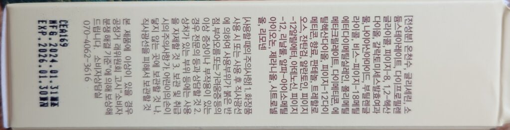 【전성분】온천수, 글리세린, 소듐스테아레이트, 다이프로필렌글라이콜, 피이지-8, 1,2-헥산다이올, 갈락토미세스발효여과물(20,000PPM), 나이아신아마이드, 부틸렌글라이콜, 비스-피이지-18메틸에터다이메틸실레인, 폴리메틸메타크릴레이트, 다이메티콘, 에틸헥산다이올, 피이지-12다이메티콘, 향료, 판테놀, 트레할로오스, 잔탄검, 알란토인, 피이지-12알릴에터, 아데노신, 피이지-12, 리날룰, 알파-아이소메틸아이오논, 제라니올, 시트로넬올, 리모넨