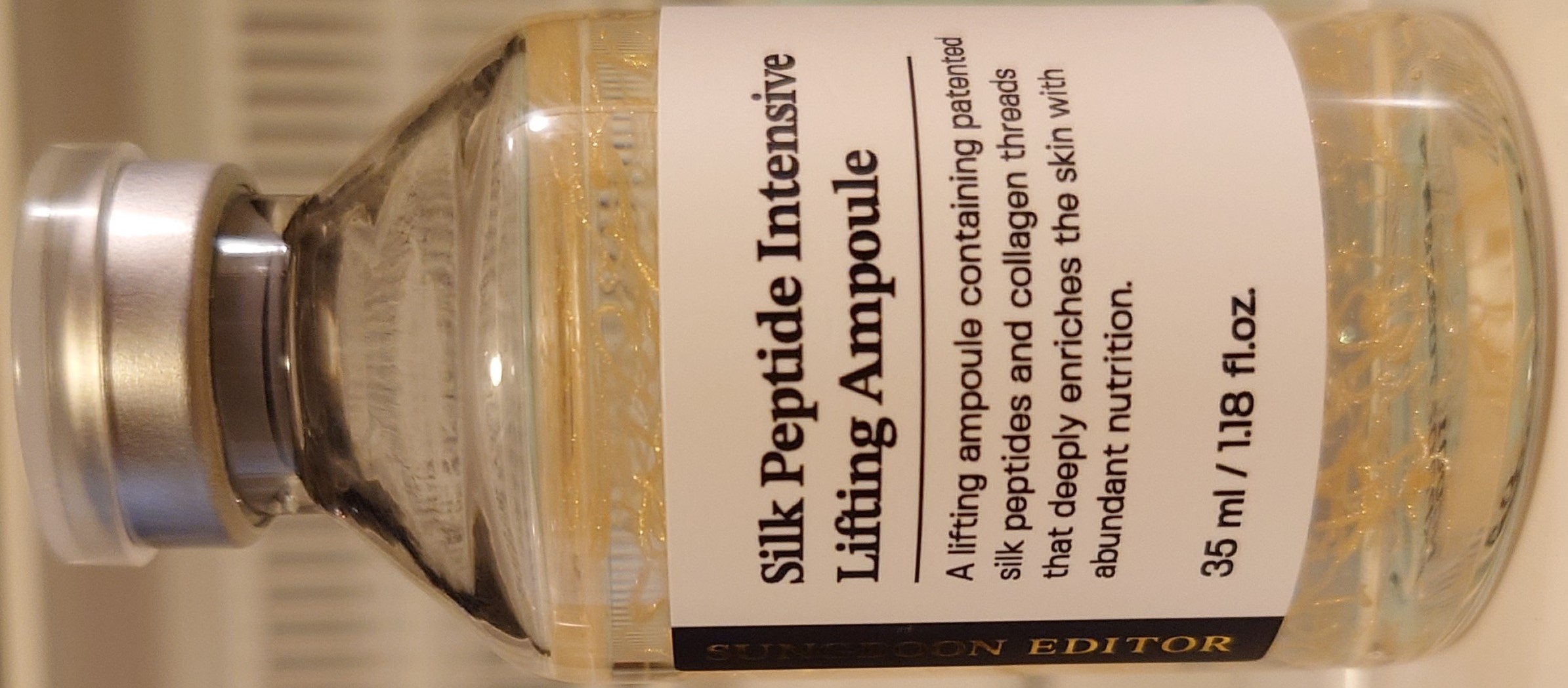 【Ingredients】Water, Butylene Glycol, Glycerin, Methylpropanediol, 1,2-Hexanediol, Niacinamide, Carbomer, Tromethamine, PPG-13-Decyltetradeceth-24, Hydroxyethylcellulose, Silk Extract, Adenosine, Chondrus Crispus Powder, Agar, Ethylhexylglycerin, Disodium EDTA, Synthetic Fluorphlogopite, Betaine, Panthenol, Hydrolyzed Elastin, Titanium Dioxide, Iron Oxides, Mica, Gellan Gum, Hydrolyzed Collagen, Centella Asiatica Extract, Propanediol, Magnesium Ascorbyl Phosphate, Houttuynia Cordata Extract, Lecithin, Acetyl Glutamine, Phenoxyethanol, Artemisia Capillaris Extract, Sodium Hyaluronate, Caprylyl Glycol, Tin Oxide, Gold, Squalane, Hydrogenated Polyisobutene, Benzyl Glycol, sh-Oligopeptide-1, sh-Polypeptide-1, sh-Oligopeptide-2, sh-Polypeptide-11, sh-Polypeptide-9, Bacillus/Folic Acid/Soybean Ferment Extract, Hydrolyzed Glycosaminoglycans, Collagen, Tocopherol, Sodium Hyaluronate Crosspolymer, Caffeoyl Hexapeptide-65, Hydrolyzed Hyaluronic Acid, sh-Decapeptide-7, sh-Octapeptide-4, sh-Oligopeptide-9, sh-Pentapeptide-19, Hydroxypropyltrimonium Hyaluronate, Palmitoyl Pentapeptide-4, Acetyl Hexapeptide-8, Copper Tripeptide-1, hyaluronic acid, Anemarrhena Asphodeloides Root Extract, Sodium Acetylated Hyaluronate