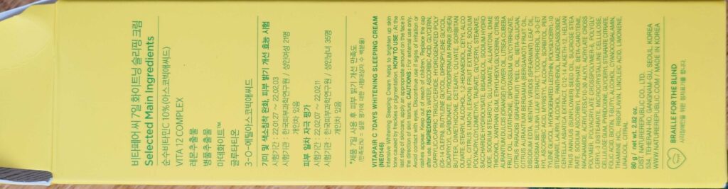 【NATURE REPUBLIC】VITAPAIR C 7DAYS WHITENING SLEEPING CREAM 80g