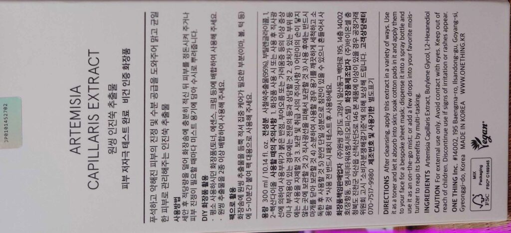【전성분】사철쑥추출물(95%), 부틸렌글라이콜, 1,2-헥산다이올